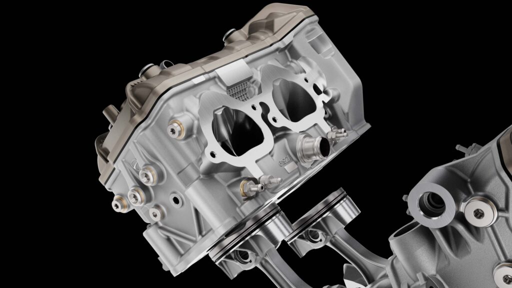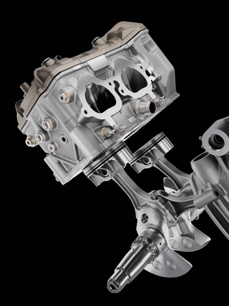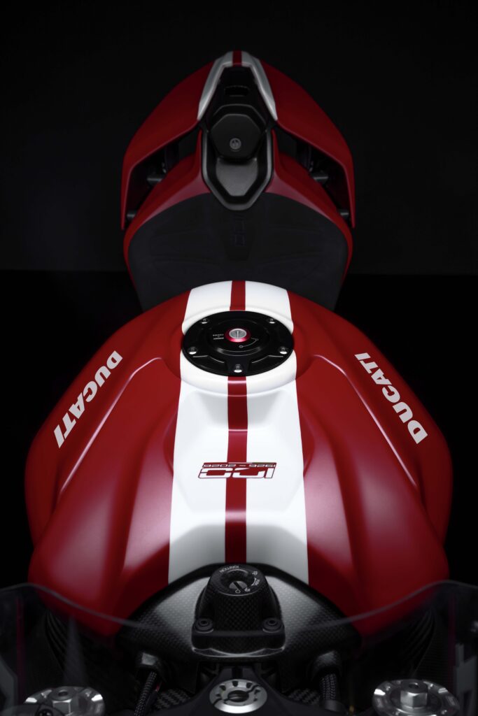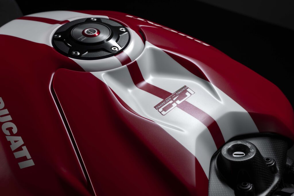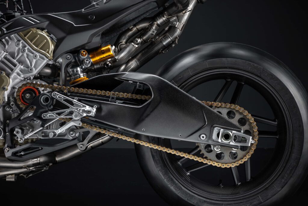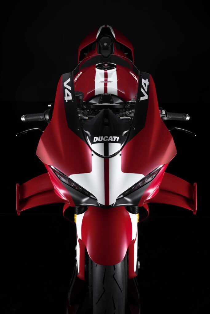 V4-motoren på 1103 kubik yder 228 hk, men ydelsen kan løftes til 247 hk med en racerudstødning fra Akrapovic, som samtidig sænker den køreklar vægt uden benzin fra allerede fjerlette 173 kg til 167 kg.