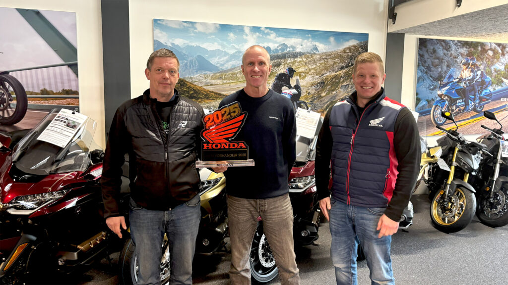 – Det er en stor fornøjelse endnu en gang at kunne anerkende MC Syd A/S som Årets Honda-forhandler. At vinde titlen fire år i træk er en bemærkelsesværdig præstation. Resultatet skyldes en stærk kombination af benhårdt arbejde, dedikation, indgående produktkendskab og et komplet udvalg af Honda’s brede modelprogram. Folkene hos og bag MC Syd har igen bevist, at det ikke kun handler om geografi eller beliggenhed, men om engagement, service og en forretning, der er værd at køre efter.